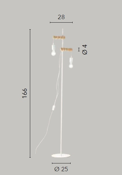 Piantana ARIZONA con struttura in legno naturale e montatura in metallo bianco 2XE27 28X166CM I-ARIZONA-PT2